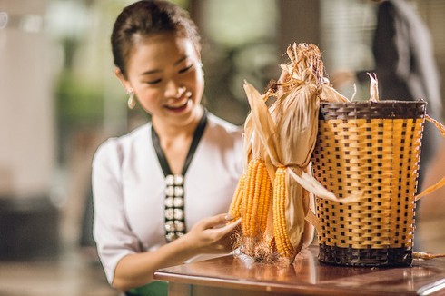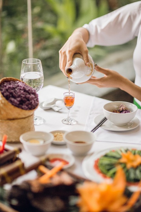 Ngoài ra, người đẹp còn nếm thử những món ăn xứ vùng cao Tây Bắc qua bàn tay tài hoa của những đầu bếp Mường Thanh như xôi tím, thịt lợn bản cắp nách nướng, rau cải mèo, thịt trâu hun khói, rượu táo mèo.
