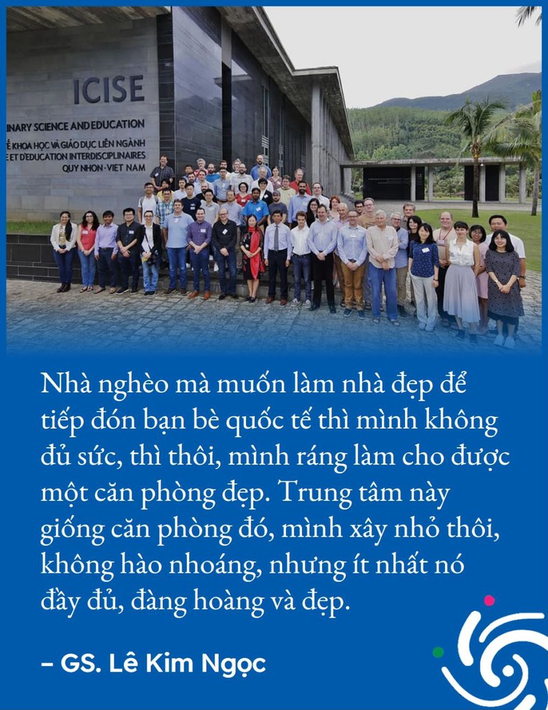Khi nhắc đến ICISE, GS Lê Kim Ngọc nói: “Việt Nam là một nước nghèo, thì cũng giống nhà nghèo. Nhà nghèo mà muốn làm nhà đẹp để tiếp đón bạn bè quốc tế thì mình không đủ sức, thì thôi, mình ráng làm cho được một căn phòng đẹp. Trung tâm này giống căn phòng đó, mình xây nhỏ thôi, không hào nhoáng, nhưng ít nhất nó đầy đủ, đàng hoàng và đẹp trong mức độ nghèo, để con cháu mình có thể tự hào đón tiếp mọi người.”
