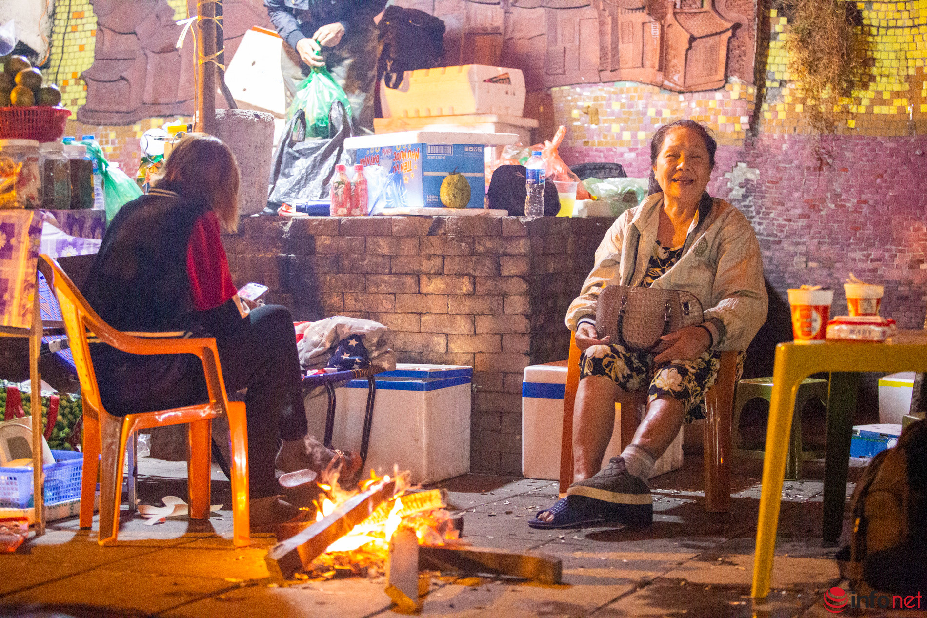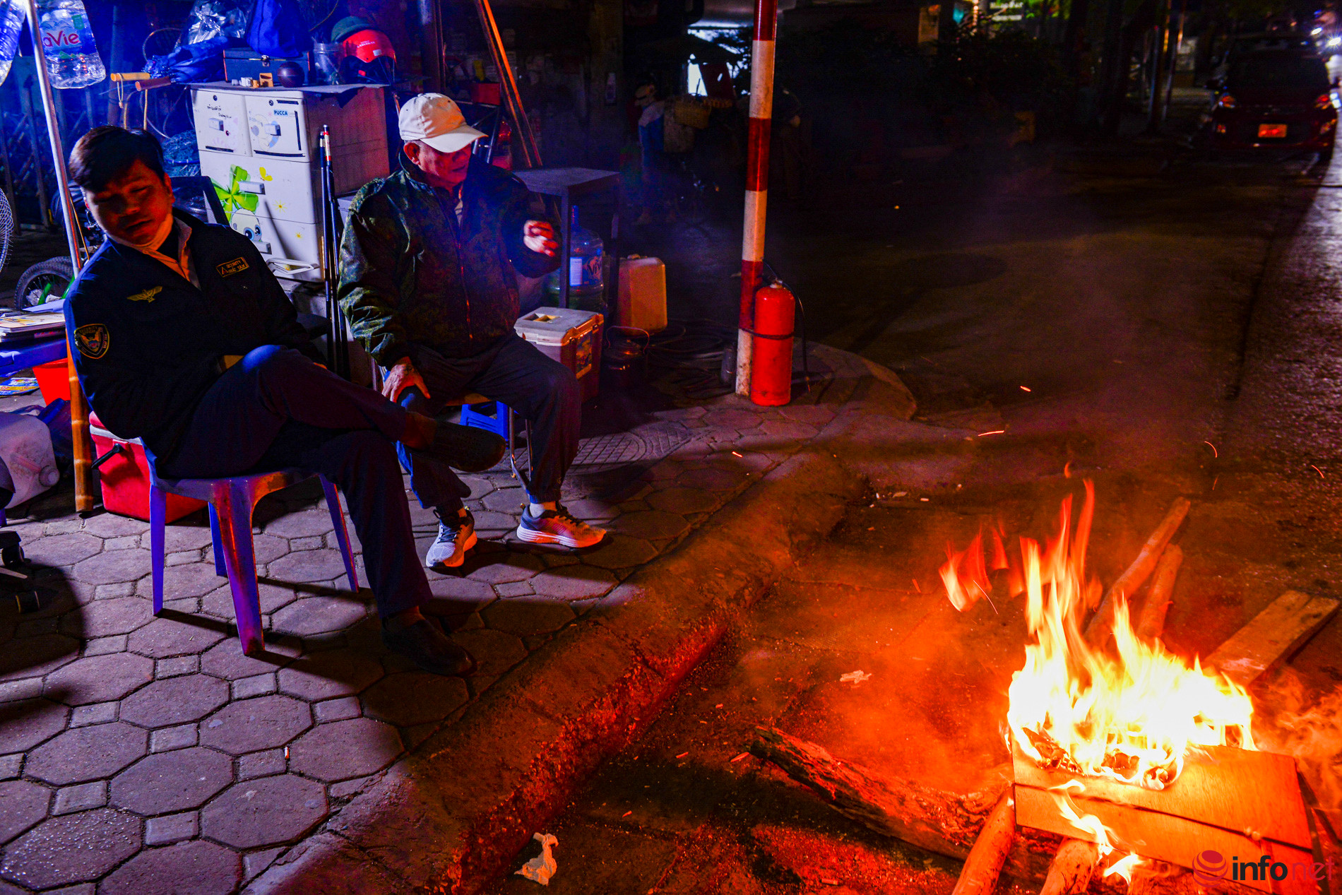 Nhiệt độ giảm nhanh và đột ngột, cái lạnh tê tái ngấm sâu khiến nhiều người mưu sinh đêm hôm khuya khoắt phải đốt lửa sưởi ấm