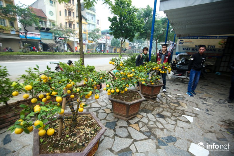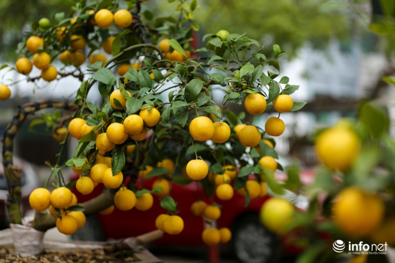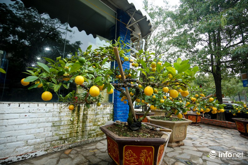 Bên cạnh đào, mai, quất, năm nay thị trường cây cảnh Tết ở Hà Nội xuất hiện thêm một loại mới là chanh vàng bonsai có giá hơn chục triệu được rất nhiều người lựa chọn làm cây cảnh chơi trong dịp Tết năm nay. |