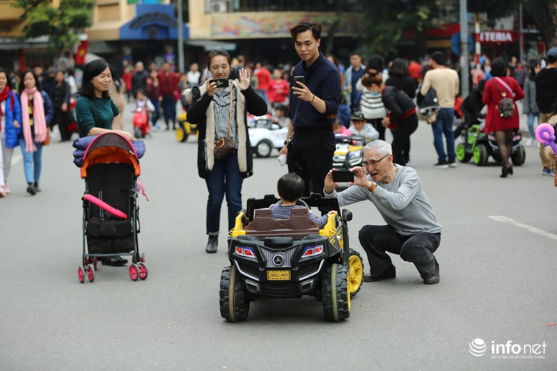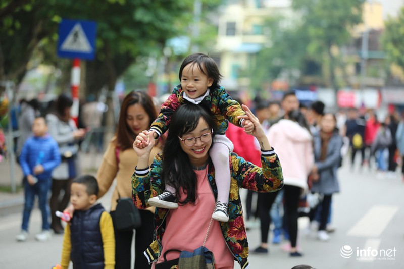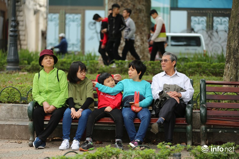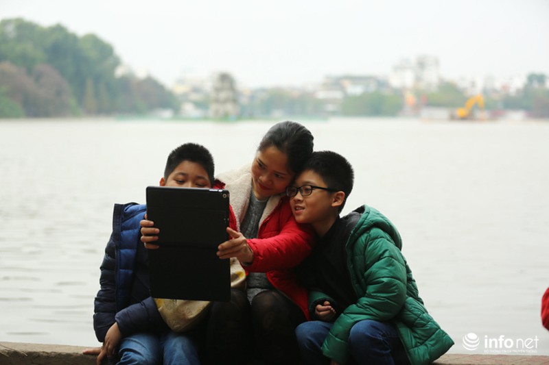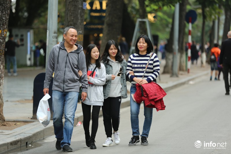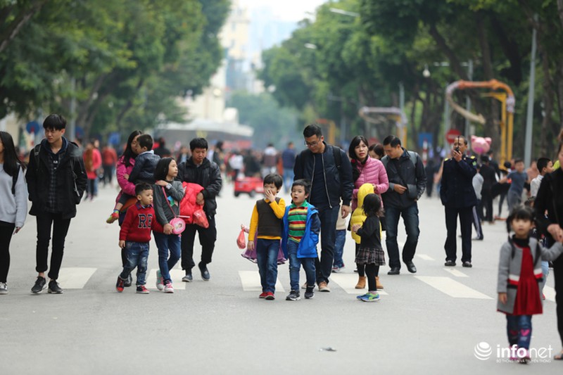 Thời tiết Hà Nội đang ở độ đẹp, trời hơi se lạnh nhưng không ẩm ướt, thích hợp để các gia đình xuống phố chuẩn bị đón năm mới.
