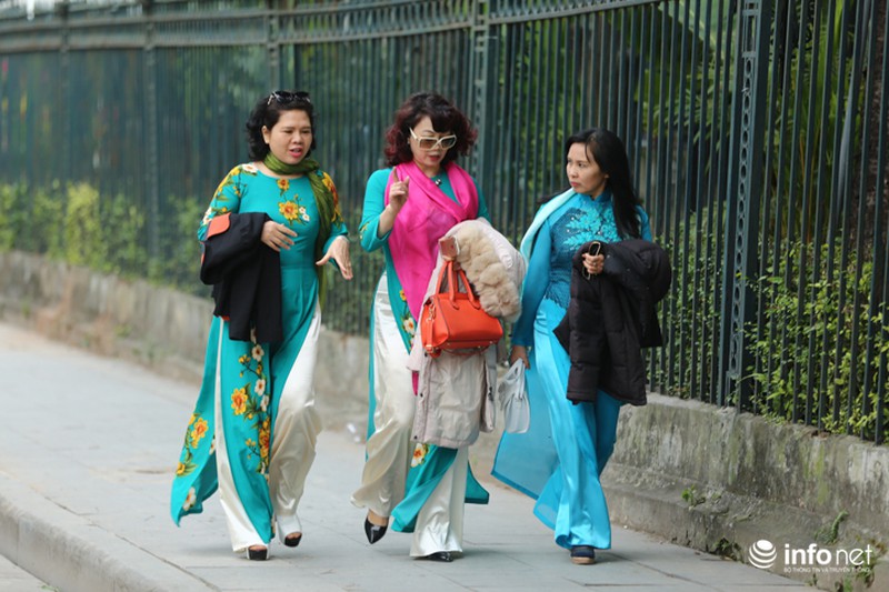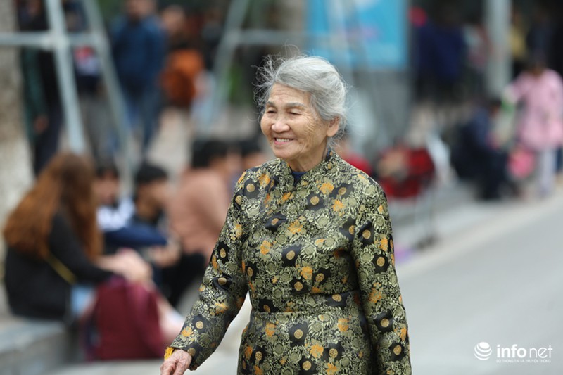 Một bà cụ diện chiếc áo dài tân thời nhẹ nhàng, chậm rãi rảo bước quanh phố phường trong buổi chiều cuối năm.
