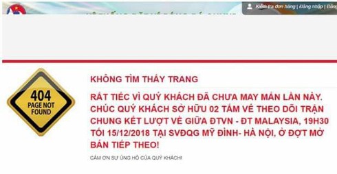 Hai trang được VFF mở ra để bán vé là https://vebongdaonline.vn và https://vebongdaonine.com.vn liên tục trong tình trạng bị lỗi và sập. Mọi giao dịch trên hai trang này đều bị ngưng trệ hoàn toàn. Thế như chỉ sau vài phút mở bán, số lượng vé đã hết.
