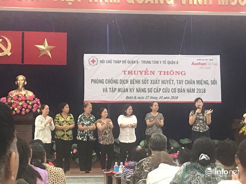 Trước tình trạng số bệnh nhân phải nhập viện điều trị các bệnh sốt xuất huyết, tay chân miệng, sởi vẫn gia tăng, ngày 27/10, Hội chữ thập đỏ TP.HCM phối hợp với Hội chữ thập đỏ, Trung tâm y tế quận 8, Công ty Auchan Retail Việt Nam tổ chức truyền thông phòng chống các bệnh này.
