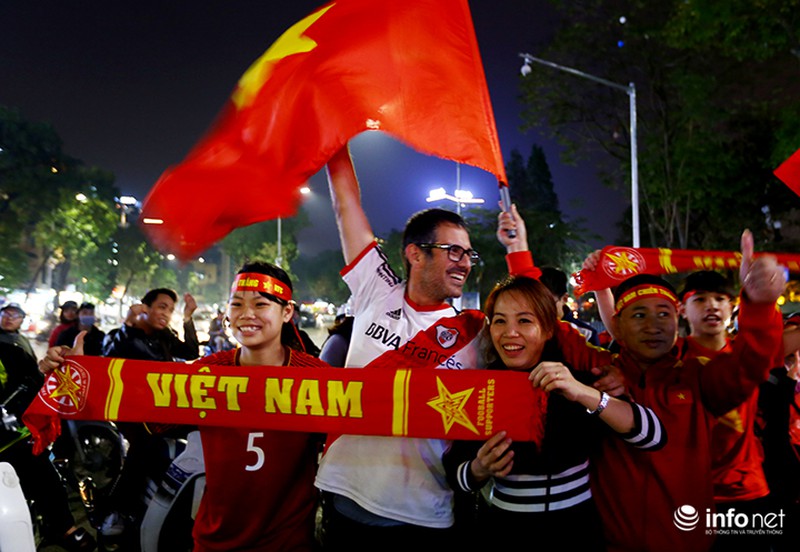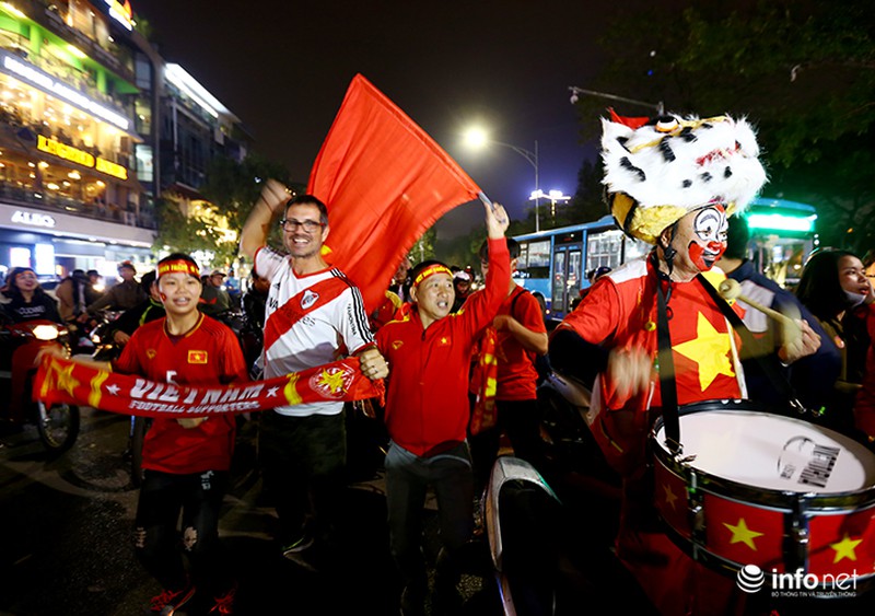 Người nước ngoài xuống đường chung vui cùng CĐV Việt Nam