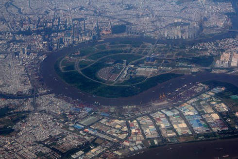 Tấm bản đồ quy hoạch này là tâm điểm trong những tranh luận giữa chính quyền TP với một số hộ dân tại Thủ Thiêm. Trong ảnh là khu đô thị Thủ Thiêm nhìn từ trên cao. |