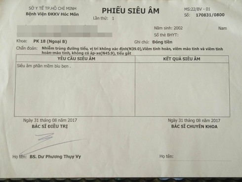 Sau đó, em H được đưa đi khám bệnh tại Bệnh viện đa khoa khu vực Hóc Môn. Kết quả khám bệnh, em H bị nhiễm trùng đường tiểu.