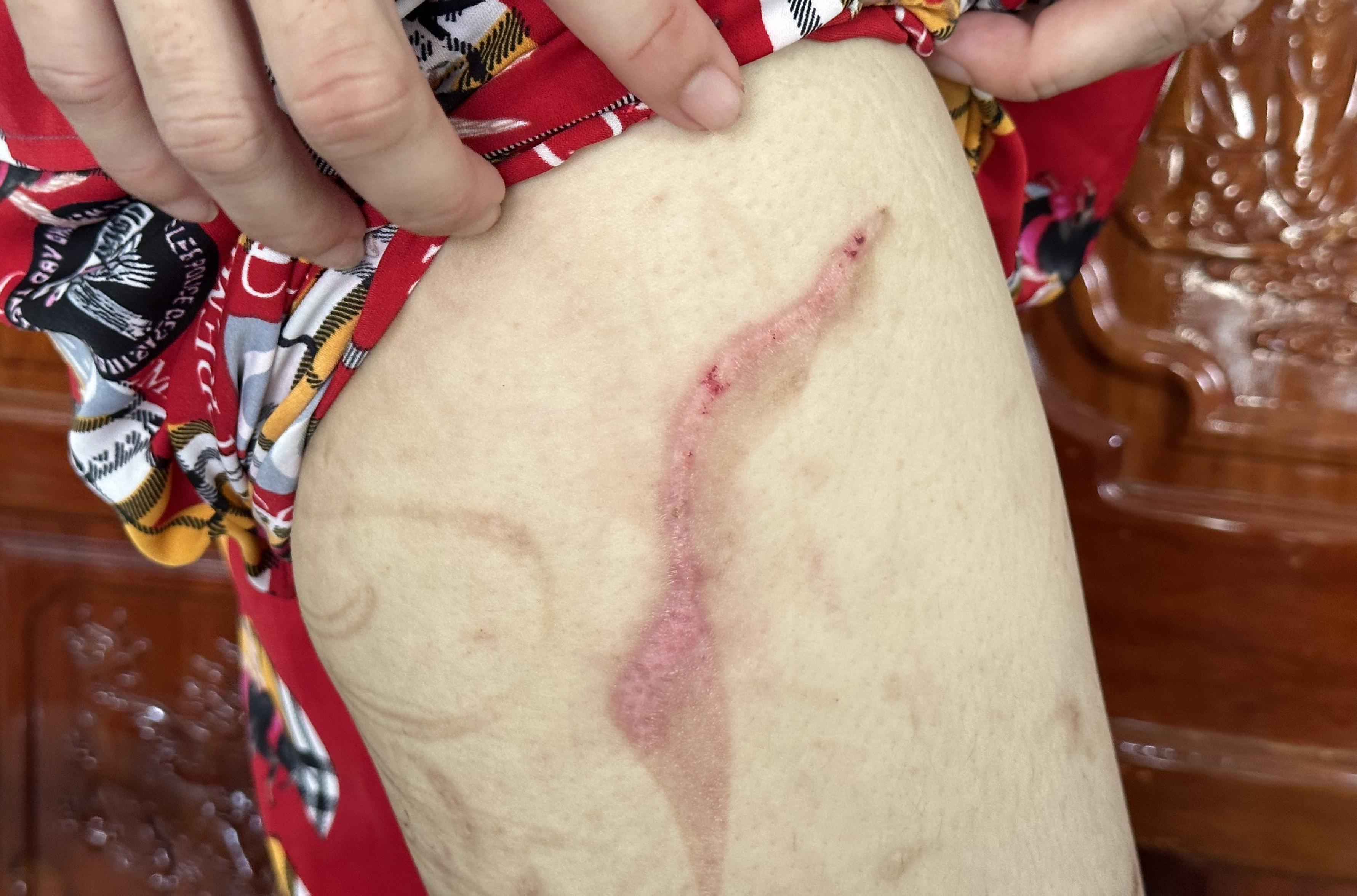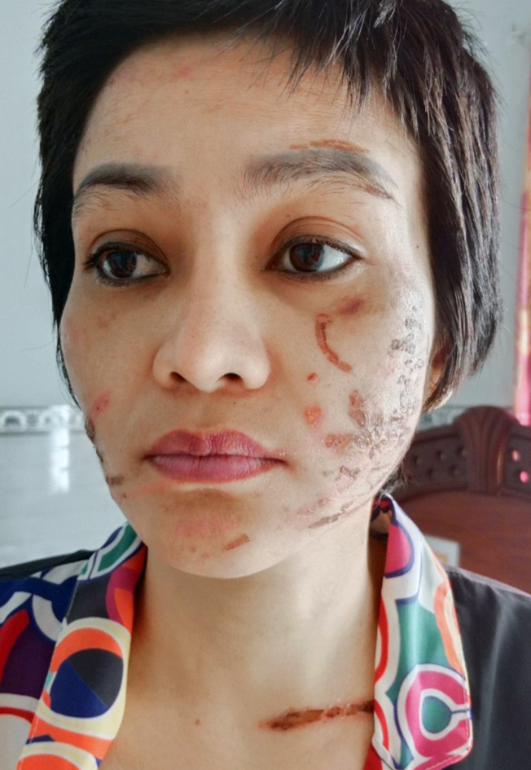 Trong đơn gửi cơ quan chức năng, chị Giao trình bày, bị anh L. bạo hành rất dã man "vết thương cũ chồng vết thương mới".