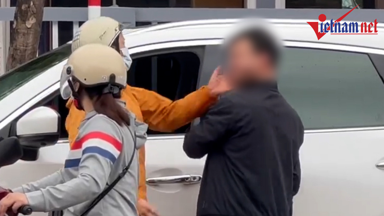 Sau cái tát đầu tiên, người đàn ông đi ô tô đã lặng lẽ quay lại xe, nhưng vẫn bị người phụ nữ trên lao tới lôi lại và tát tiếp vào mặt.