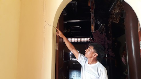 Tường nhà chùa cũng xuất hiện những vết nứt dài |