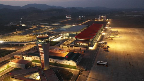 Nhà ga Cảng hàng không quốc tế Vân Đồn trong đêm. |