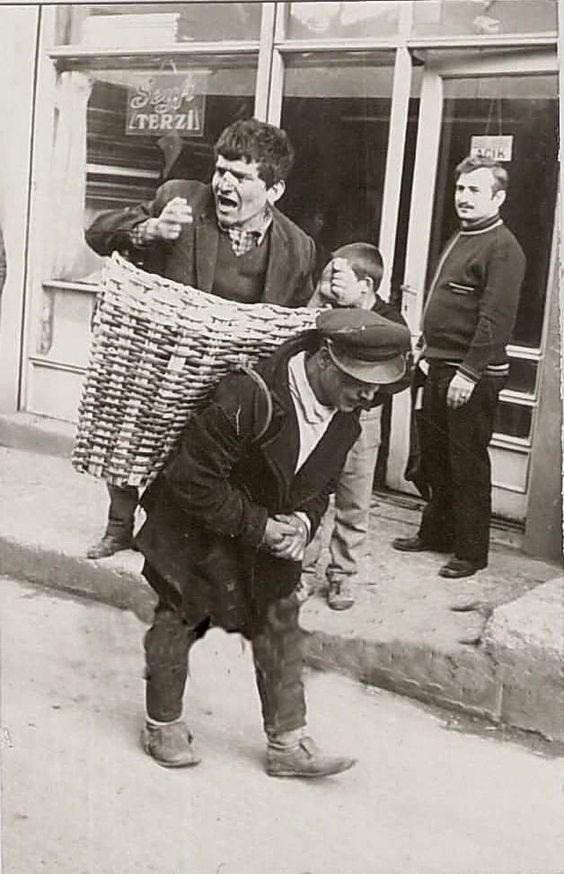 Trong vài thế kỷ, người ta có thể tìm thấy những người khuân vác với những chiếc giỏ đan bằng liễu gai lớn gần các quán bar của Thổ Nhĩ Kỳ. Công việc của họ là đợi những người say rượu để đưa về nhà. Quan trọng nhất là một người đã uống quá nhiều có thể đọc rõ địa chỉ nhà. Tuy nhiên, nếu người say rượu là khách quen, rất có thể quán bar đã biết địa chỉ nhà của anh ta.