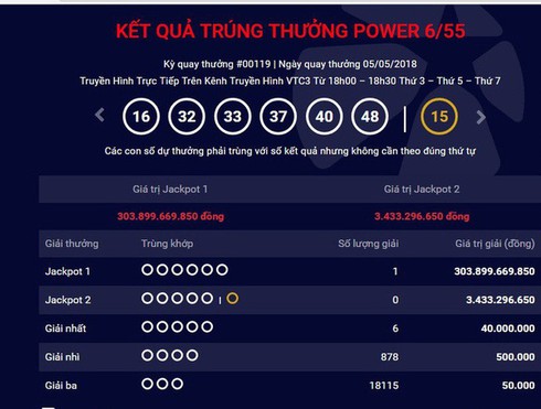 Dãy số trúng thưởng là 16-32-33-37-40-48 đã giúp ông Q trở thành người may mắn trúng Vietlott với giải thưởng lớn nhất từ trước đến nay.