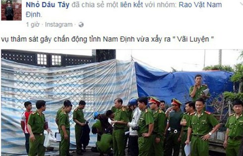Trước đó, ngày 10/8, nam thanh niên 29 tuổi này sử dụng tài khoản facebook có tên “Nhỏ dâu tây” chia sẻ một liên kết lên trang facebook “Rao vặt Nam Định” với nội dung “Nam Định thảm sát trong đêm, 8 người trong một gia đình thiệt mạng”.