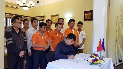 Tổng giám đốc công ty Movitel ký sổ tang. |