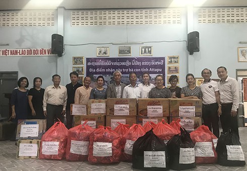 Hưởng ứng chủ trương của Chính phủ Lào và Lãnh đạo Đảng bộ, Chính quyền các địa phương, với truyền thống "lá lành đùm lá rách" của dân tộc Việt Nam, chiều ngày 25/7/2018, đại diện Ban Chấp hành Hội người Việt Nam tỉnh Khammouane đã tham gia cùng đoàn cứu trợ của tỉnh Khammouane đến tỉnh Attapeu để trao quà ủng hộ (5 triệu kíp và 30 két mỳ ăn liền).