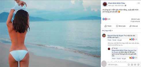 Chỉ một thời gian ngắn đăng tải, bức hình đã thu hút rất nhiều sự quan tâm từ cộng đồng mạng. Đặc biệt hoa hậu Kỳ Duyên - người tình tin đồn của Minh Triệu đã vào bình luận rằng: "Thôi mặc áo vào đi kẻo cảm lạnh".