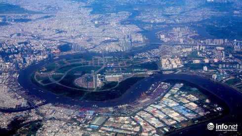 "Bán đảo" Thủ Thiêm nhìn từ trên cao. |