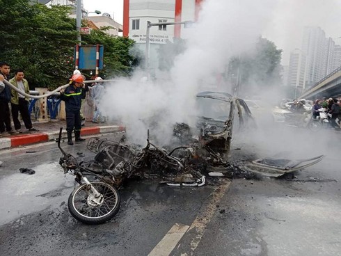 Sáng ngày 20/11, một vụ tai nạn nghiêm trong đã xảy ra tại nút giao Láng Hạ- Ngã Tư Sở, Hà Nội. Tại hiện trường vụ tai nạn, chiếc xe ô tô Mercedes cháy rụi cùng một chiếc xe máy khiến nhiều người chú ý.