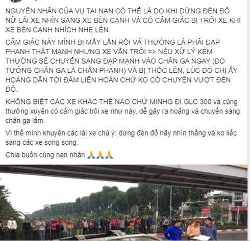 Tuy nhiên mới đây, một bài viết trên mạng xã hội đã phân tích tình huống "nhỡ chân ga" của nữ doanh nhân này và cho rằng, rất có thể cô nàng đã dừng xe nhưng bị ảo giác nên đạp thắng, hậu quả là đạp nhầm chân ga. Người này cho biết, cô nàng có khả năng bị "ảo giác xe đi lùi", một loại "bệnh" phổ biến với cánh tài xế và rất nguy hiểm với những người đi xe không tỉnh táo.