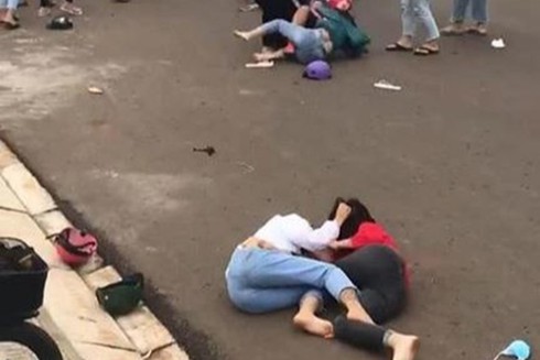 Tại đây, 2 nhóm nữ sinh này dùng tay chân và mũ bảo hiểm để đánh nhau, rất may không ai bị thương tích nặng nề.