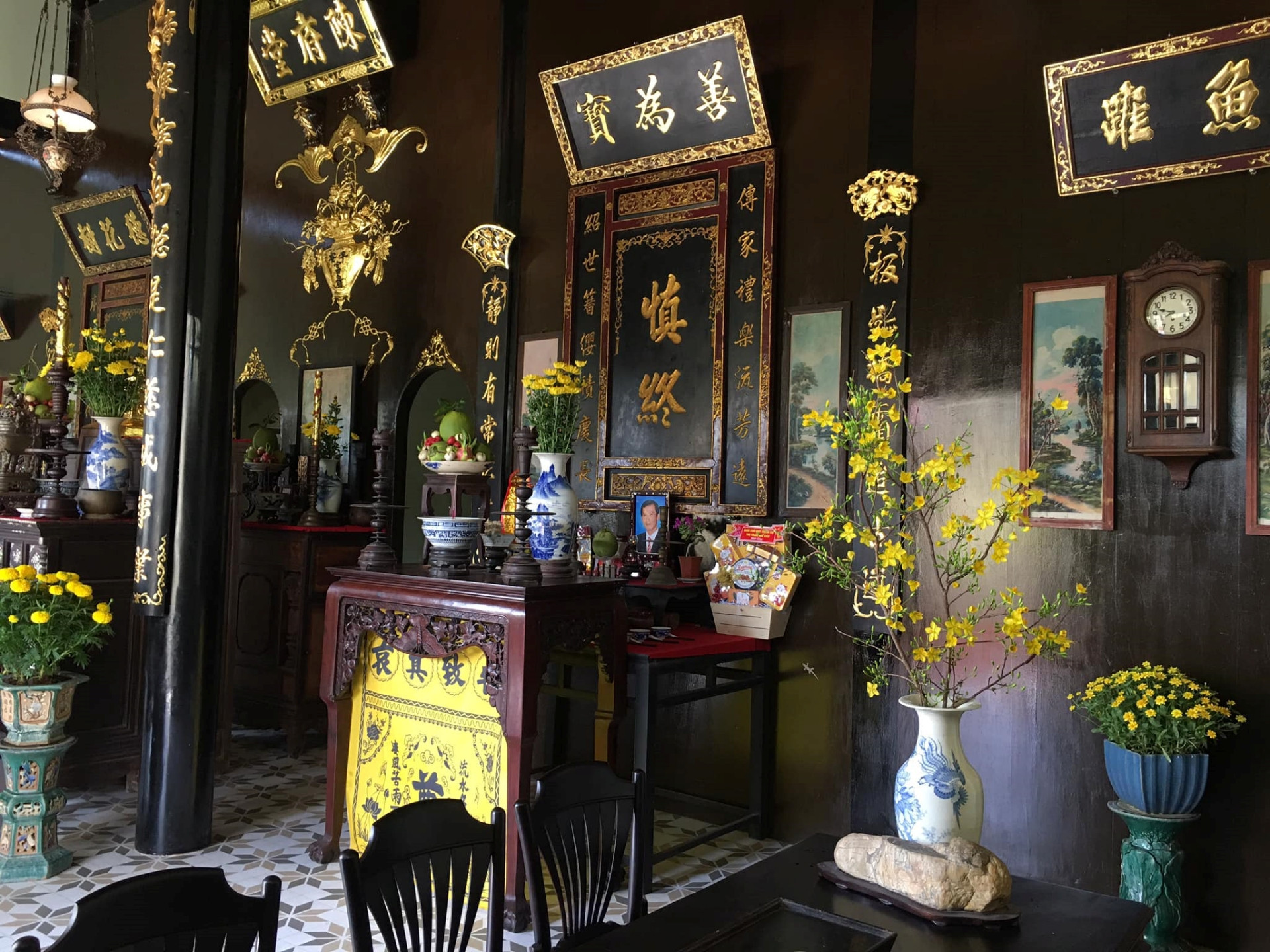 Năm đó, ông cố tôi mua gỗ và mướn nghệ nhân xứ Huế vào làm phủ thờ. Phủ thờ lúc đó có 3 gian, 2 chái, theo mẫu nhà truyền thống cột cây Nam Bộ, trên diện tích khoảng 500m2".