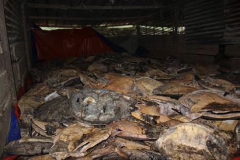 Trước đó, vào cuối năm 2014, hơn 10 tấn rùa biển ước tính tương đương 7.000 cá thể được phát hiện tại 6 nhà kho ở TP Nha Trang (tỉnh Khánh Hòa). Đây được coi là vụ bắt giữ rùa biển lớn nhất từ trước đến nay. Hai đối tượng cầm đầu đường dây buôn bán rùa biển này là hai anh em Hoàng Mạnh Cường và Hoàng Tuấn Hải. Được biết hai đối tượng này từ lâu đã được đặt trong “tầm ngắm” của lực lượng Công an nhưng sau nhiều năm, các cơ quan chức năng mới triệt phá được đường dây buôn bán và chế tác rùa biển do chúng cầm đầu.