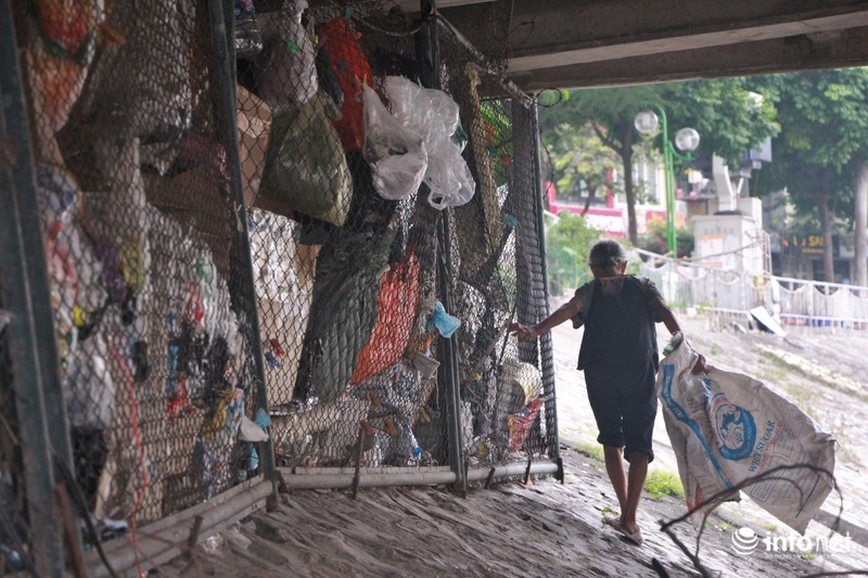 Dù gầm cầu được phường Yên Hòa rào lưới B40, nhưng mỗi lần giải tỏa xong cụ Lụa lại cắt rào vào ở. |