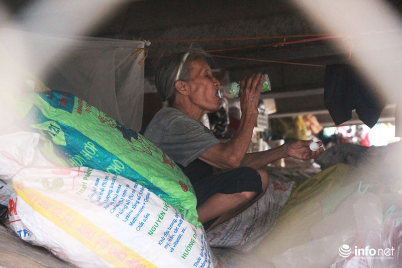 Theo cụ Lụa: "Mỗi ngày tôi kiếm được khoảng 30.000 đồng từ tiền bán ve chai, ăn uống hết 20.000 đồng, còn lại 10.000 đồng phòng lúc ốm đau, còn có cái mà mua thuốc thang. Người giờ già rồi, bệnh tật thì không biết có không, nhưng lúc đi ngủ là đã thấy đau mỏi hết cả người". |