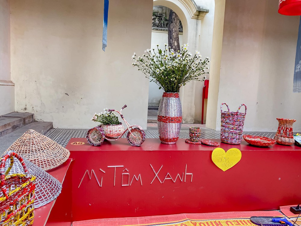 Từ những chiếc vỏ của gói mì tôm, chị Vũ Thị Thảo (SN 1988, Hà Nội) cùng các thành viên câu lạc bộ Mì Tôm Xanh đã tái chế thành hàng trăm sản phẩm hữu ích, góp phần bảo vệ môi trường như lót li, giỏ, túi xách... Đặc biệt, hoạt động này còn vô cùng ý nghĩa khi toàn bộ số tiền từ việc bán các sản phẩm tái chế được CLB dành tặng cho các quỹ từ thiện. CLB còn đào tạo hướng nghiệp cho các em học sinh khiếm thính.