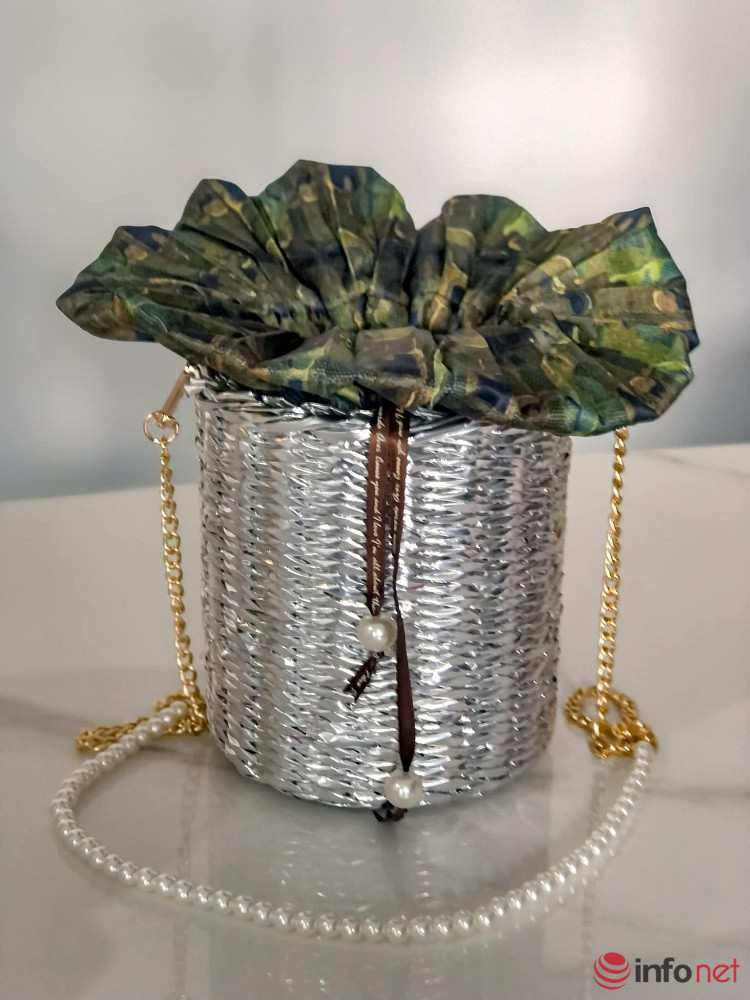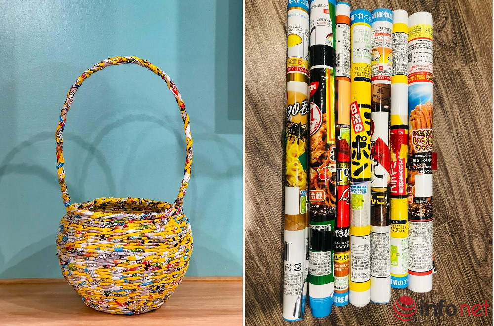 "“Vỏ túi mì tôm mềm, dễ cuộn, lại có nhiều màu sắc nên sẽ tạo ra những sản phẩm bắt mắt và nếu được tái chế còn góp phần hạn chế tối đa việc thải rác khó phân hủy ra môi trường. Nguyên liệu tái chế này lại rất dễ kiếm, hoàn toàn có thể xin miễn phí từ nhiều nơi.