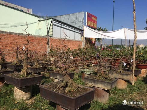 Một trong những điểm bán mai tết trên đường Phạm Văn Đồng, quận Thủ Đức. |
