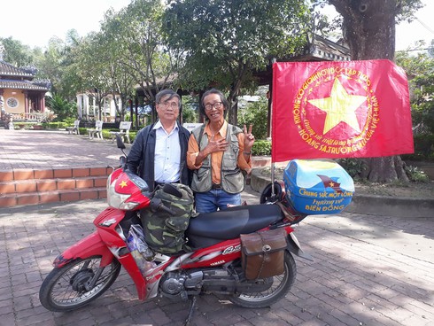 Nhạc sĩ Đỗ Lập chụp ảnh chung cùng 1 người bạn khi ông dừng chân tại Quảng Nam |