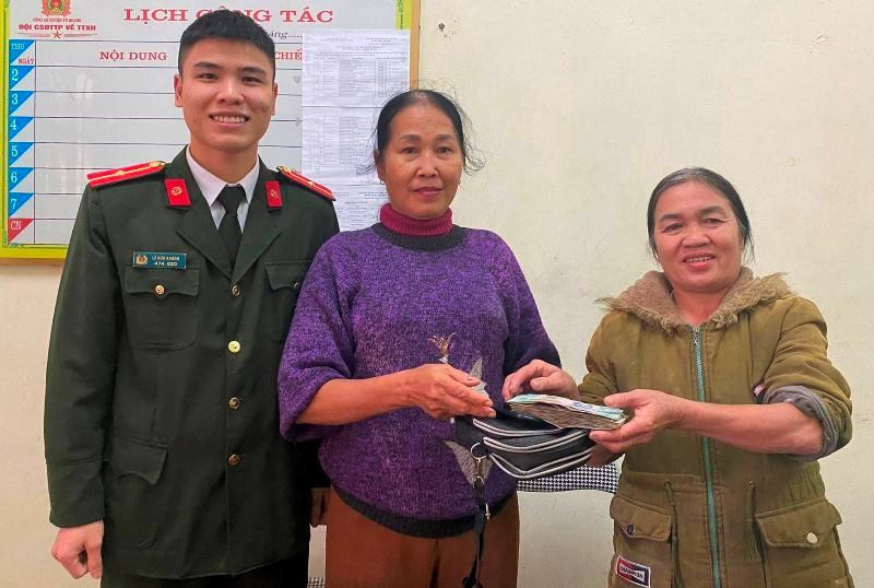Ngay sau đó, bà Hồng đã đến Công an huyện Vũ Quang để trình báo, giao nộp và nhờ tìm người trả lại. Bằng các biện pháp nghiệp vụ, Công an huyện Vũ Quang đã xác minh và xác định bà Lê Thị Hoa là người đã đánh rơi chiếc túi và số tài sản trên.