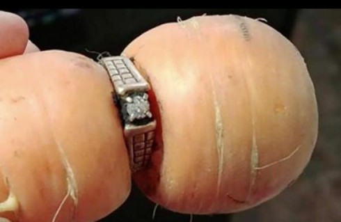 Mới đây, con của cụ đã bất ngờ trông thấy chiếc nhấn khi ra vườn nhổ cà rốt. Cô gái đã phát hiện củ cà rốt có hình dáng kỳ lạ với chiếc nhẫn nằm ở giữa.