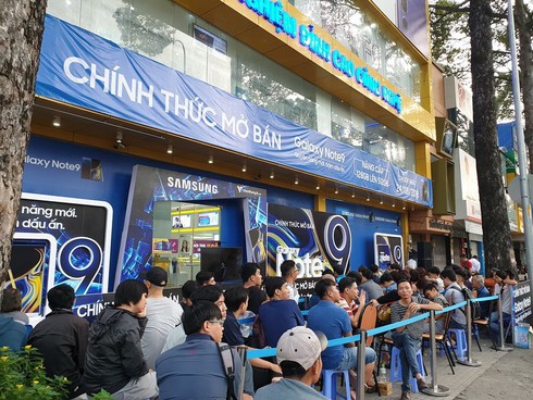 Trước đó gần một tuần, một trong số những sự kiện công nghệ nổi bật nhất chính là việc hàng trăm người xếp hàng trước siêu thị VinPro và cửa hàng Viễn Thông A để mua Samsung Galaxy Note9. Cảnh tượng hiếm gặp trong thời điểm “tháng ngâu” này đến từ gói ưu đãi hấp dẫn chỉ có tại các cửa hàng này, gồm: Voucher nghỉ dưỡng tại hệ thống khách sạn 5 sao Vinpearl, bộ quà tặng công nghệ lên tới 5 triệu đồng và cơ hội nâng cấp miễn phí lên bản 512GB.