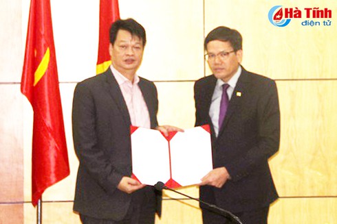 Ông Nguyễn Thành Lệ - Phó Vụ trưởng Vụ tổ chức, cán bộ - Bộ NN&PTNT trao quyết định tiếp nhận và bổ nhiệm đồng chí Trần Nhật Lam (bên trái) - Ảnh: báo Hà Tĩnh |