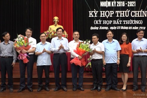 Lãnh đạo tỉnh Thanh Hóa chúc mừng tân Chủ tịch HĐND, UBND huyện Quảng Xương. |