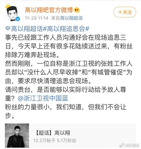 Mới đây, Weibo chính thức của fanpage Cao Dĩ Tường đăng bài chia sẻ, cho biết một nhân viên họ Trương của đài Chiết Giang lấy lý do "không có nhiều người đến nên xin hãy nhanh chóng thu dọn" và "quản lý thành phố hối thúc" nhằm yêu cầu, bắt fan của Cao Dĩ Tường dẹp bỏ nơi tưởng niệm, giải tán hiện trường khu vực đặt vòng hoa của nam diễn viên quá cố. Trước động thái này của đài Chiết Giang, fan của Cao Dĩ Tường tuyên bố :"Chúng tôi tuy ít, nhưng sẽ không nhượng bộ."