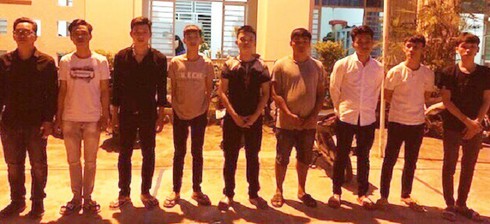 Nhóm thanh niên liên quan được công an triệu tập làm việc. |