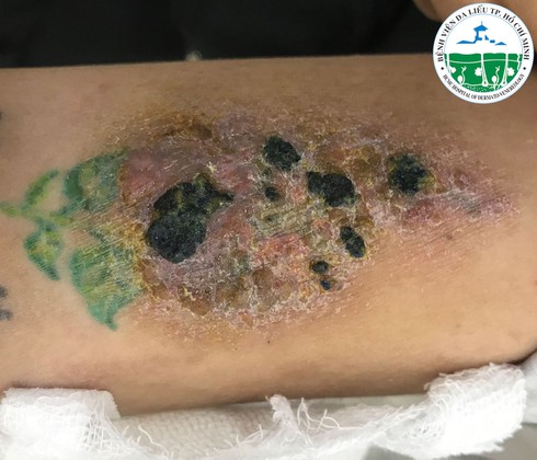 Anh N.T.A (25 tuổi thường trú tại TP.HCM) đến Bệnh viện Da liễu TP.HCM khám trong tình trạng vết xăm hình ở cánh tay phải bị sưng, vùng da xăm bị rộp nước, đau và ngứa, người sốt… được chẩn đoán bị nhiễm trùng do xăm hình.
