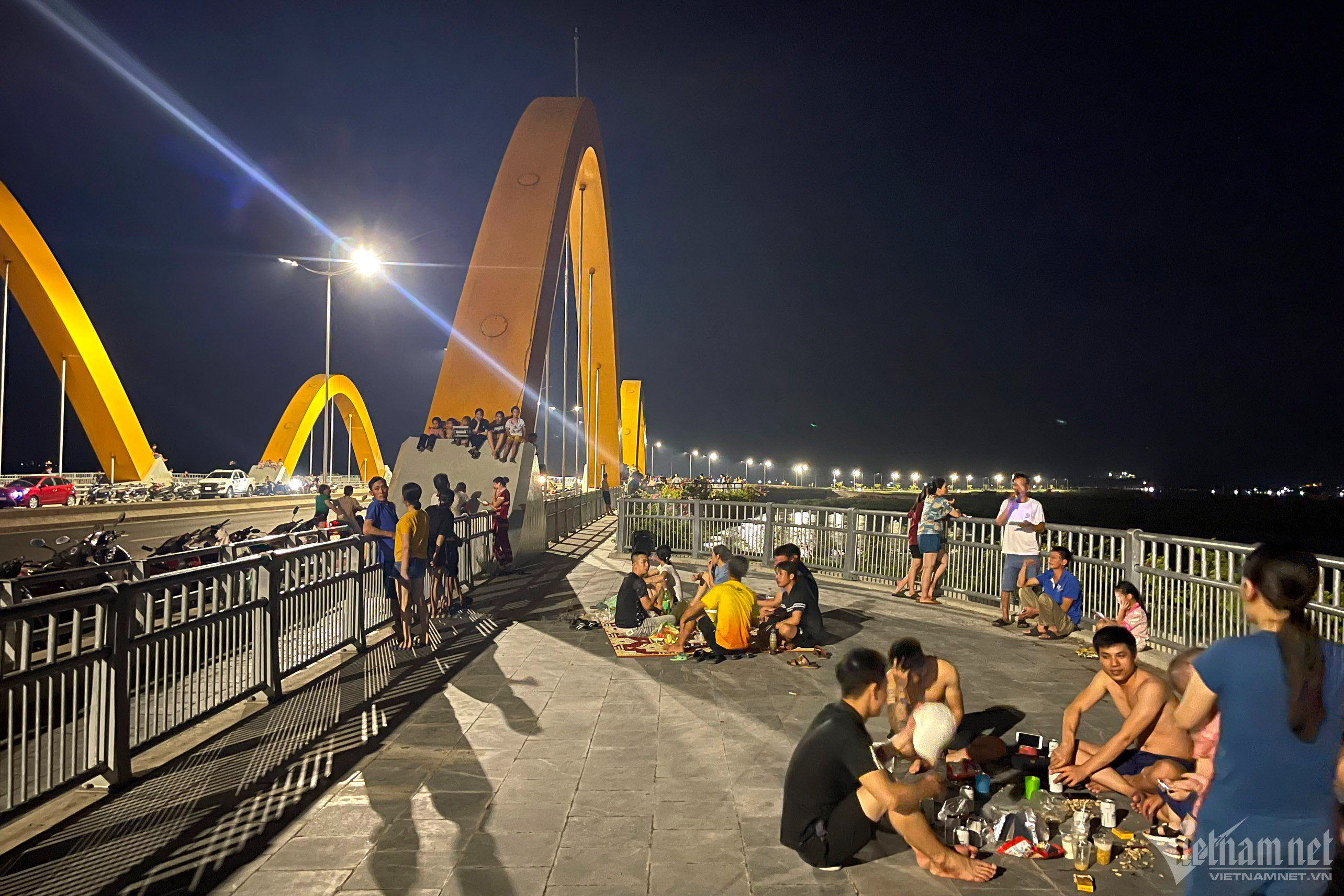 Để hóng mát, rất đông người dân dồn về hai bên cầu Tình Yêu. Tại đây xe máy, ô tô đỗ kín ngay ở lòng đường trên cầu, đường đi bộ thành nơi ngồi nhậu của người lớn. Nhiều trẻ em được bố mẹ cho trèo lên trụ cầu Tình Yêu để ngồi hóng mát, có nơi cao hơn 5m.