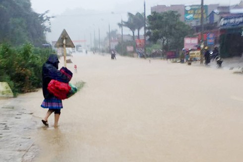 Mưa lớn gây ngập lụt quốc lộ 6, đoạn qua xã Lóng Luông (Vân Hồ). |