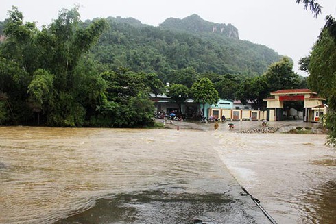 Cầu tràn bắc qua suối Tấc trên tỉnh lộ 114, thuộc địa phận xã Huy Hạ (Phù Yên) bị ngập sâu |