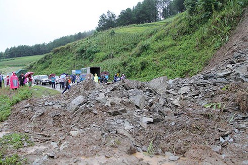 đoạn trên QL6 qua xã Vân Hồ, huyện Vân Hồ bị sạt lở đất gây ách tắc giao thông |