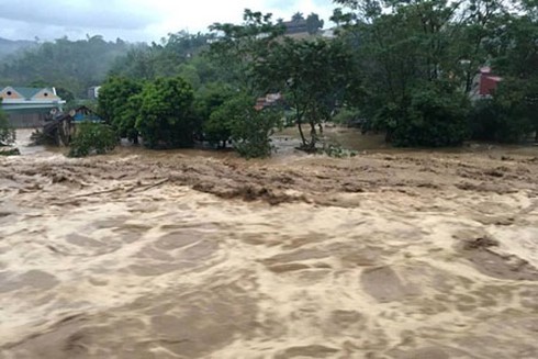 Hiện nước lũ ở các sông suối của huyện Văn Chấn đang dâng cao và chảy xiết. |
