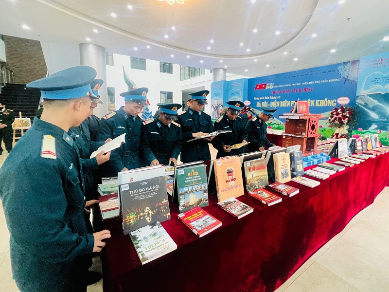 Chương trình Trưng bày sách báo và Giao lưu nhân chứng - sự kiện “Vang mãi bản hùng ca Hà Nội - Điện Biên Phủ trên không” được tổ chức ngày 14/12 tại Trung tâm Văn hoá Thông tin và Thể thao Đống Đa, Hà Nội. Ảnh: Bình Minh