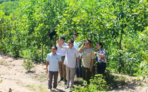 Đoàn của Trung tâm tư vấn và hỗ trợ Phát triển vùng Dân tộc thiểu số Nghệ An đi thăm các mô hình trồng cây thí điểm ở Nghệ An. (Ảnh. Đ.T) |