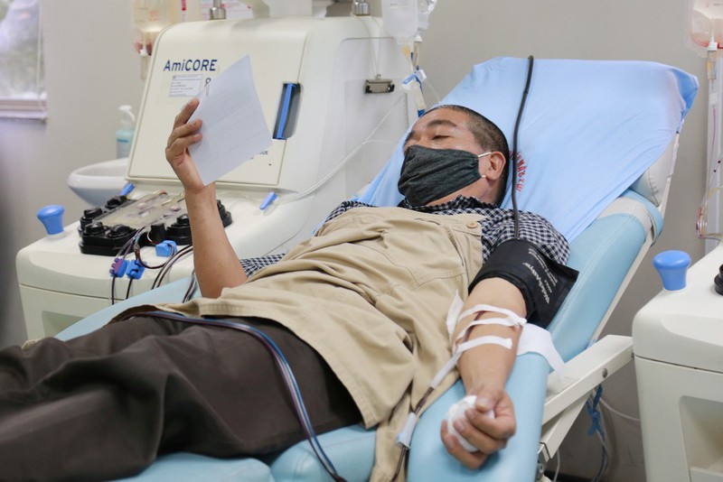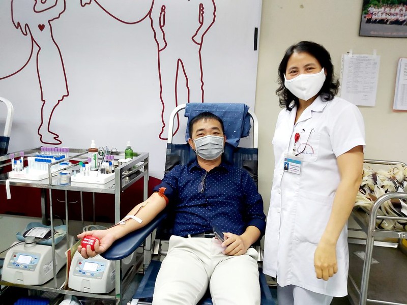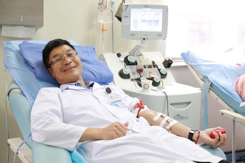 2 lần hiến máu toàn phần, TS. Trần Ngọc Quế – Phó Giám đốc Trung tâm Máu quốc gia đã kịp hiến tiểu cầu 2 lần từ sau Tết đến nay. |