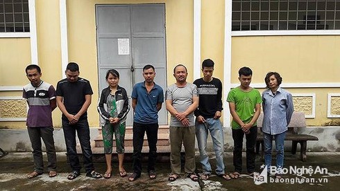 Các đối tượng đánh bạc bằng hình thức lô đề bị Công an huyện Anh Sơn bắt giữ vào tháng 10/2017. (Ảnh: Thái Hiền) |